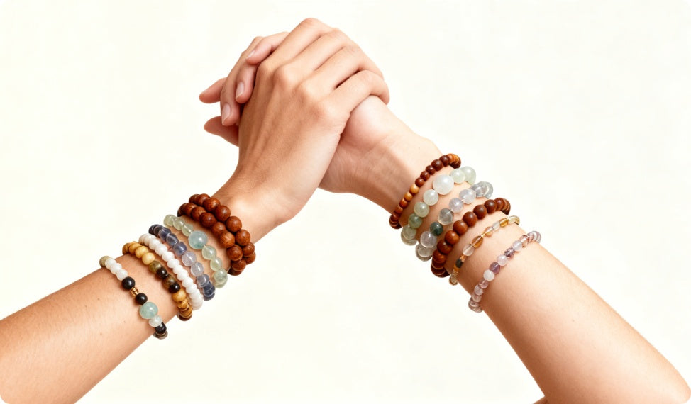 Green Phantom Crystal & Wooden Bead Bracelet